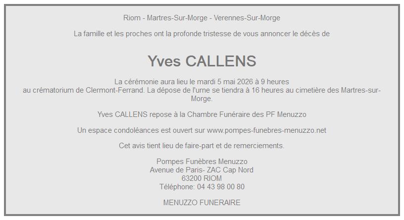 Décédé à Ennezat (63720) le lundi 27 avril 2026 à l'âge de 89 ans