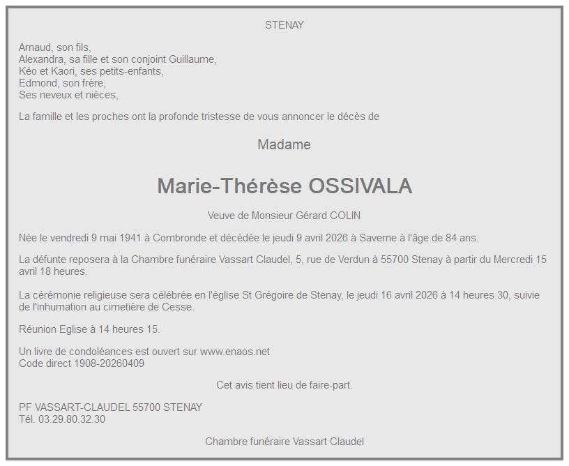 PAROISSE DE STENAY de Stenay le jeudi 16 avril à 14 heures 30