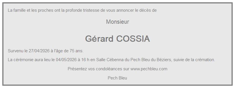 Décédé à Béziers (34500) le lundi 27 avril 2026 à l'âge de 75 ans