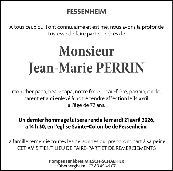 Avis de décès de Jean-Marie PERRIN