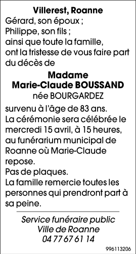 Funérarium Municipal de Roanne de Roanne le mercredi 15 avril à 15 heures