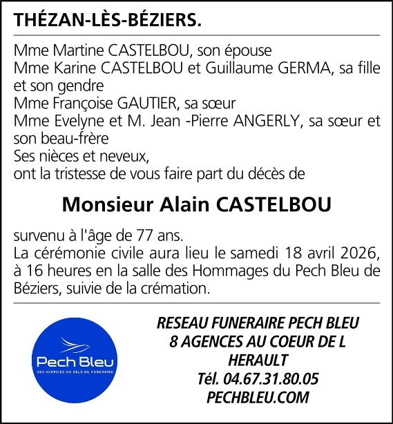 CENTRE FUNERAIRE DE BEZIERS op zaterdag 18 april om 16 u 45
