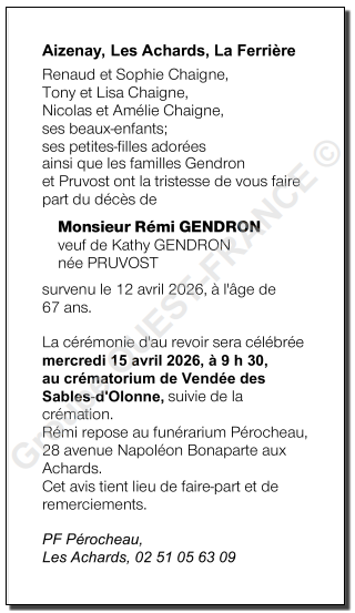 Crématorium de Vendée de Les Sables d'Olonne le mercredi 15 avril à 9 heures 30