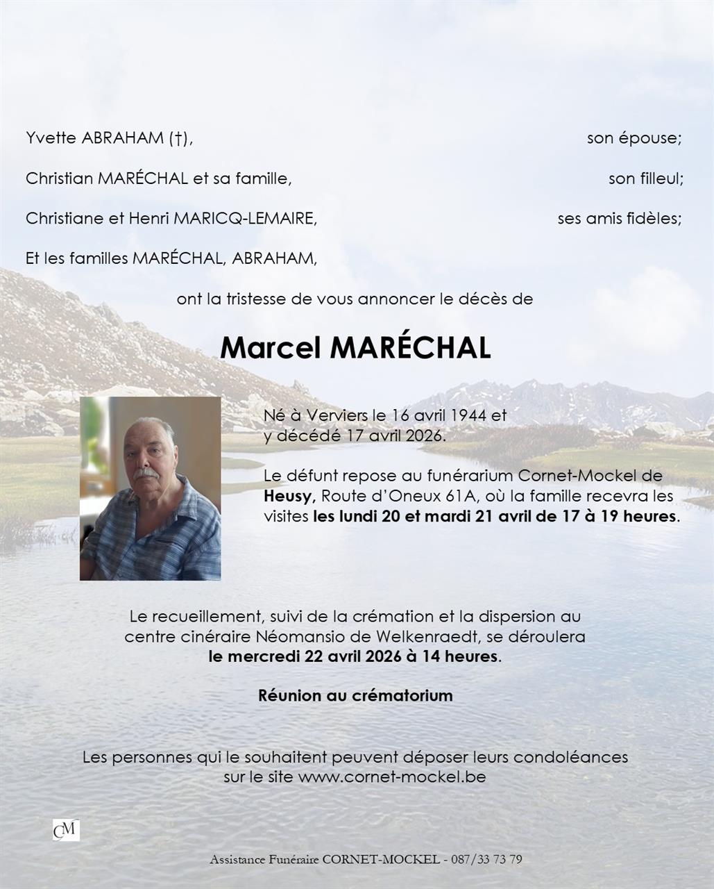 Avis de décès de Monsieur Marcel MARÉCHAL