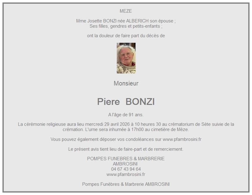 crématorium de Sète le mercredi 29 avril à 11 heures