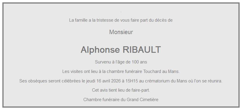 Overlijdensbericht van Monsieur Alphonse RIBAULT