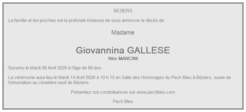 Obituary for Madame Giovannina GALLESE born MANCINI