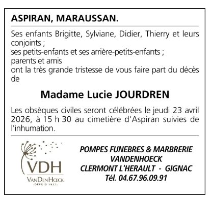 cimetière d'Aspiran de Aspiran le jeudi 23 avril à 15 heures 30