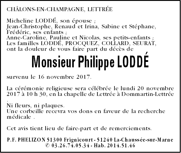 Décédé à Châlons-en-Champagne (51000) le jeudi 16 novembre 2017 à l'âge de 79 ans
