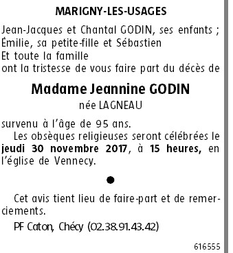 Fallecida en Orléans (45000) el viernes, 24 de noviembre de 2017 a la edad de 95 años