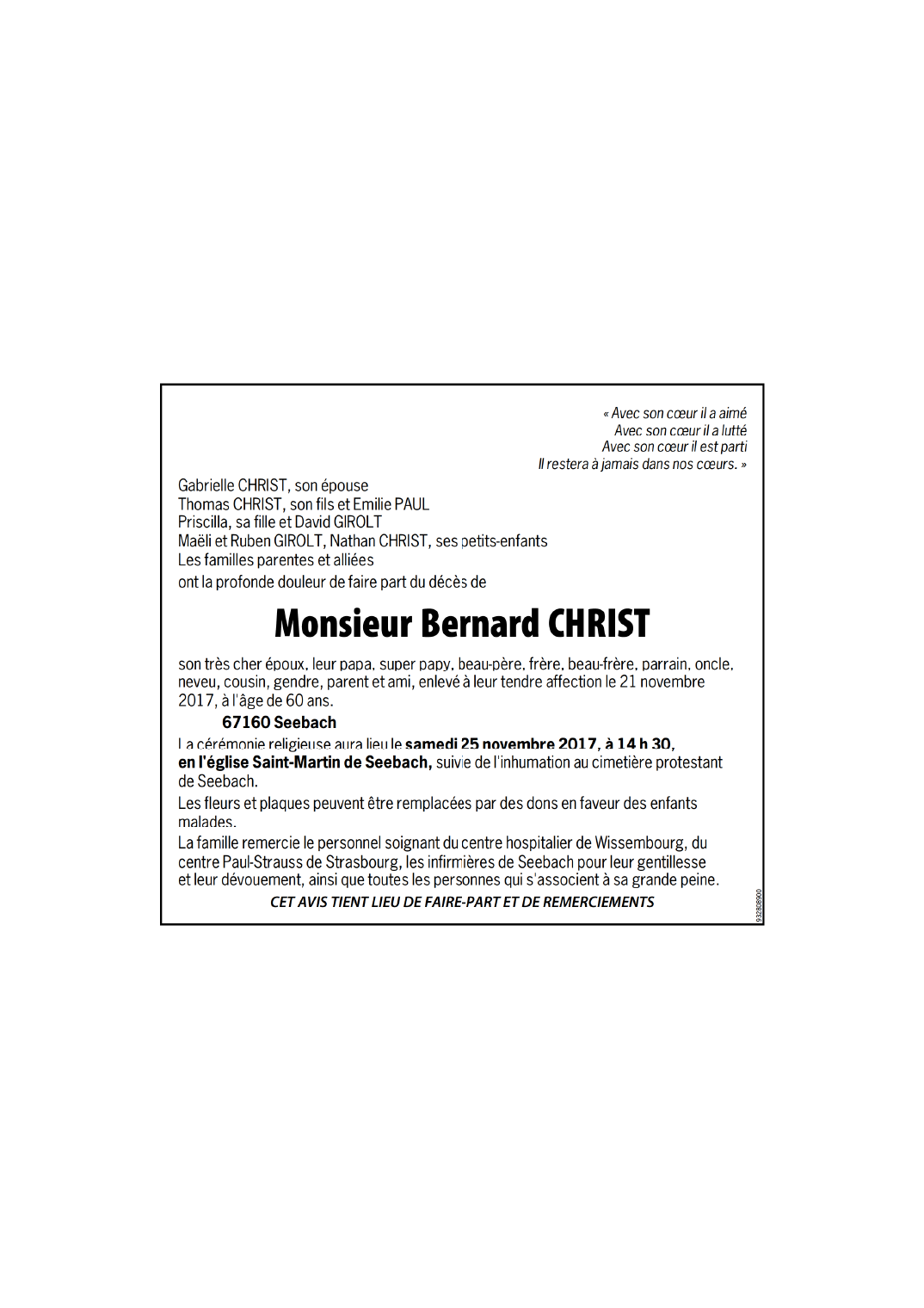 Fallecido en Strasbourg (67000) el martes, 21 de noviembre de 2017 a la edad de 60 años