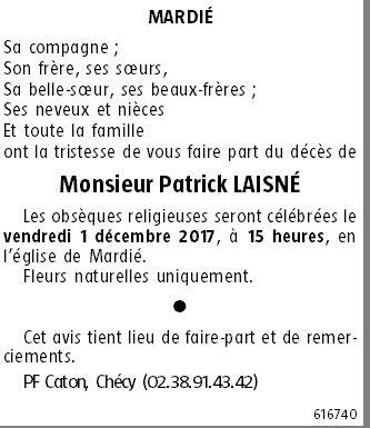 Né à Mardié (45430) le dimanche 18 mars 1951