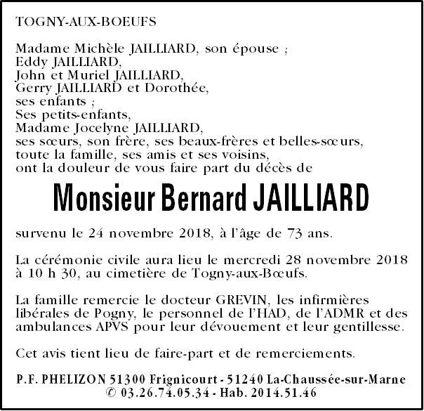 Overleden te Togny-aux-Bœufs (51240) op zaterdag 24 november 2018 op 73-jarige leeftijd