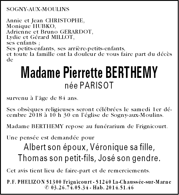 Madame Pierrette BERTHEMY née PARISOT