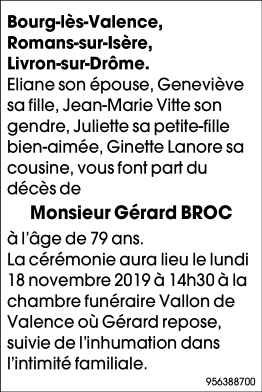 Décédé à Valence (26000) le mercredi 13 novembre 2019 à l'âge de 79 ans