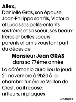 Décédé à Soyans (26400) le samedi 16 novembre 2019 à l'âge de 76 ans