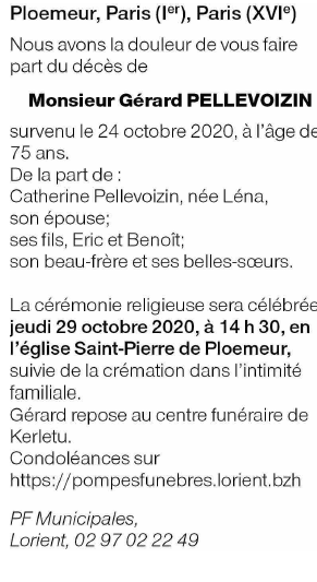Décédé à Lorient (56100) le samedi 24 octobre 2020 à l'âge de 75 ans