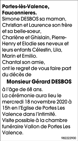 Décédé à Tournon-sur-Rhône (07300) le samedi 14 novembre 2020 à l'âge de 68 ans