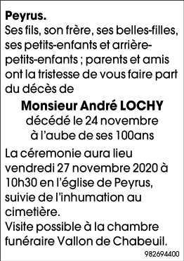 Décédé à Montelier (26120) le mardi 24 novembre 2020 à l'âge de 99 ans