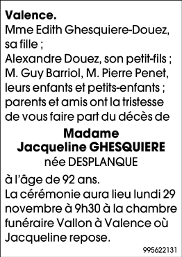 Madame Jacqueline GHESQUIERE née DESPLANQUE