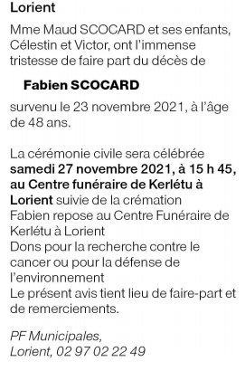 Décédé à Lorient (56100) le mardi 23 novembre 2021 à l'âge de 48 ans