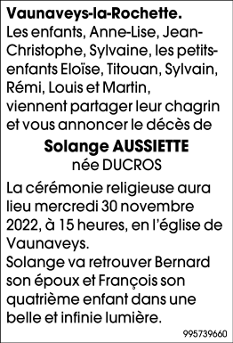 Décédée à Valence (26000) le samedi 26 novembre 2022 à l'âge de 78 ans