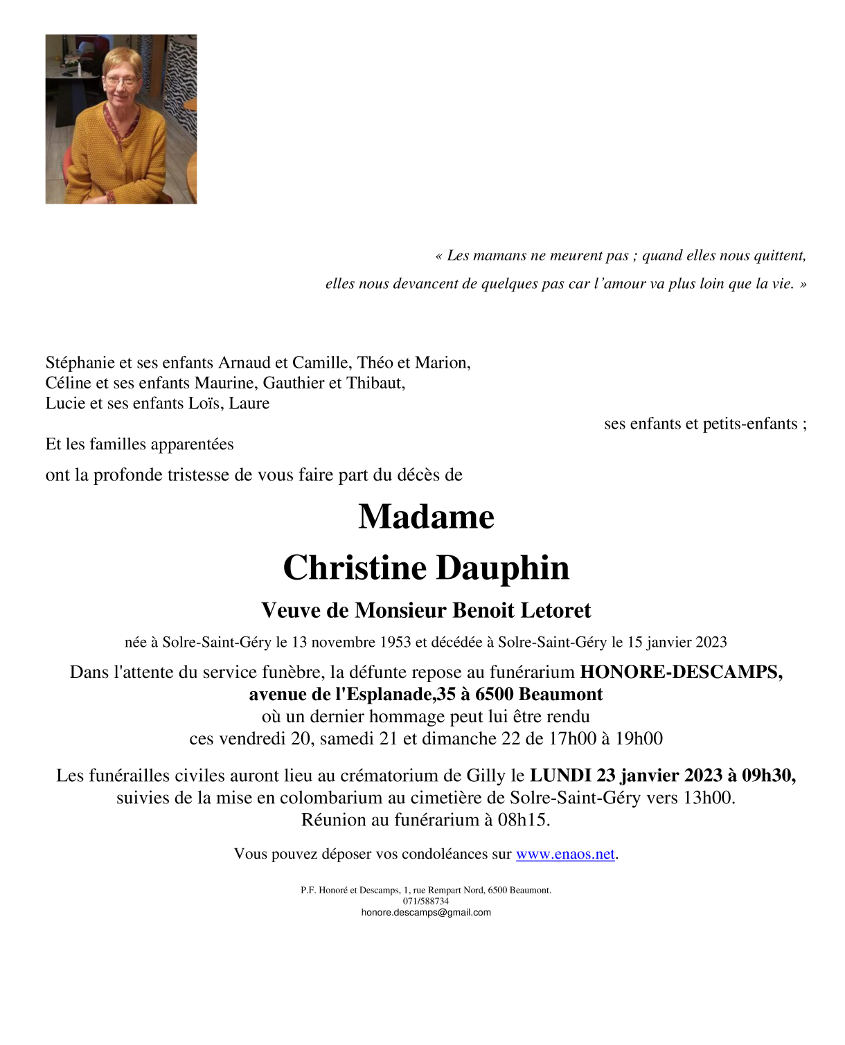 Overleden te Solre-Saint-Géry (6500, België) op zondag 15 januari 2023 op 69-jarige leeftijd