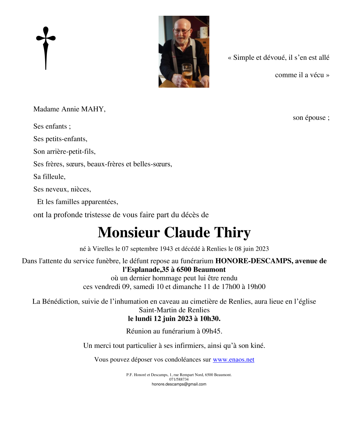 Fallecido en Renlies (6500, Bélgica) el jueves, 8 de junio de 2023 a la edad de 79 años