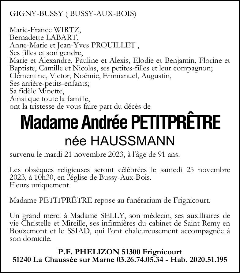 Madame Andrée PETITPRETRE née HAUSSMANN