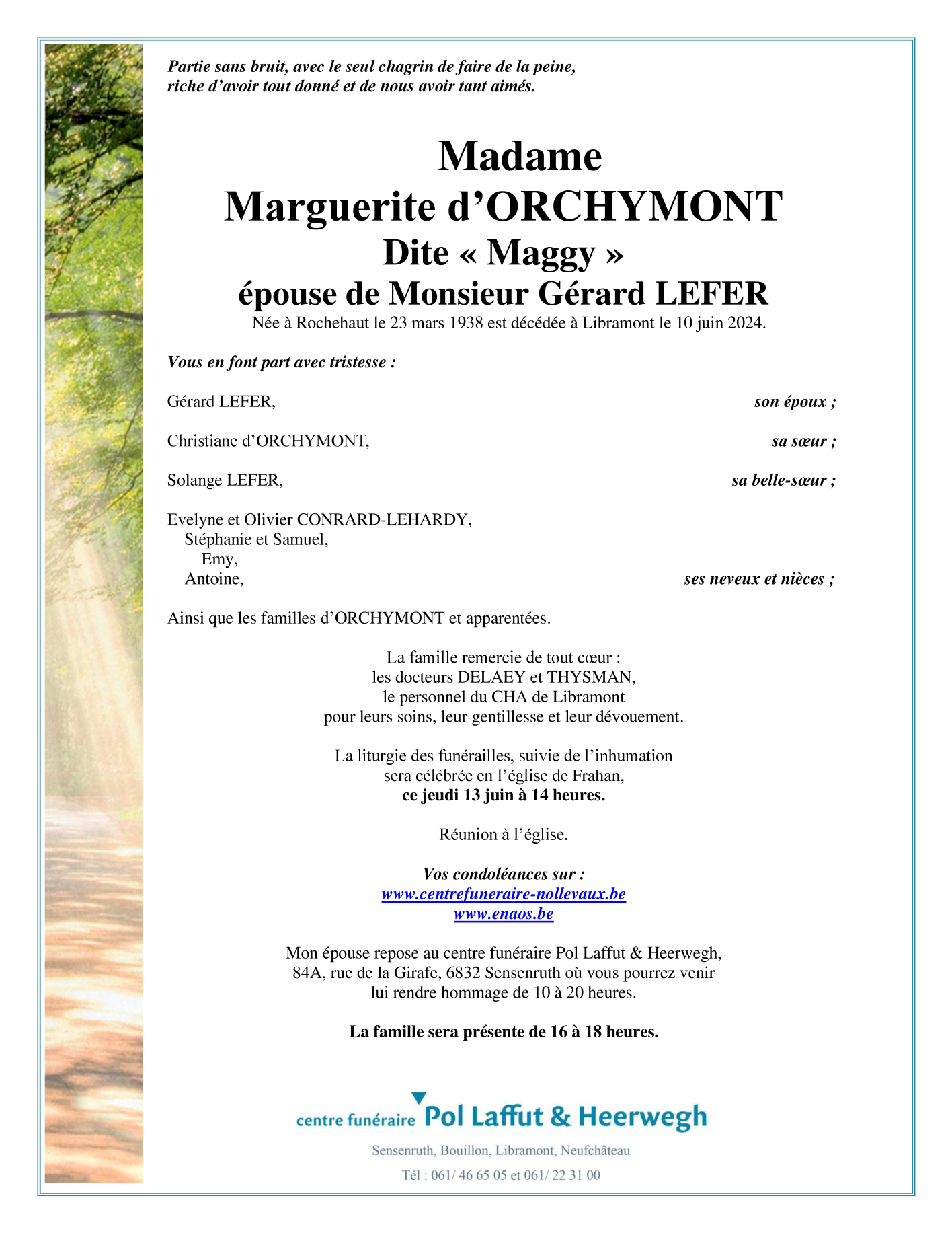 Died in Libramont-Chevigny (6800, Belgium) on 10 June 2024 at the age of 86 years