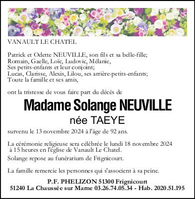 Décédée à Vitry-le-François (51300) le mercredi 13 novembre 2024 à l'âge de 92 ans