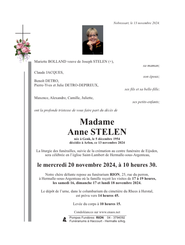 Fallecida en Arlon (6700, Bélgica) el miércoles, 13 de noviembre de 2024 a la edad de 69 años