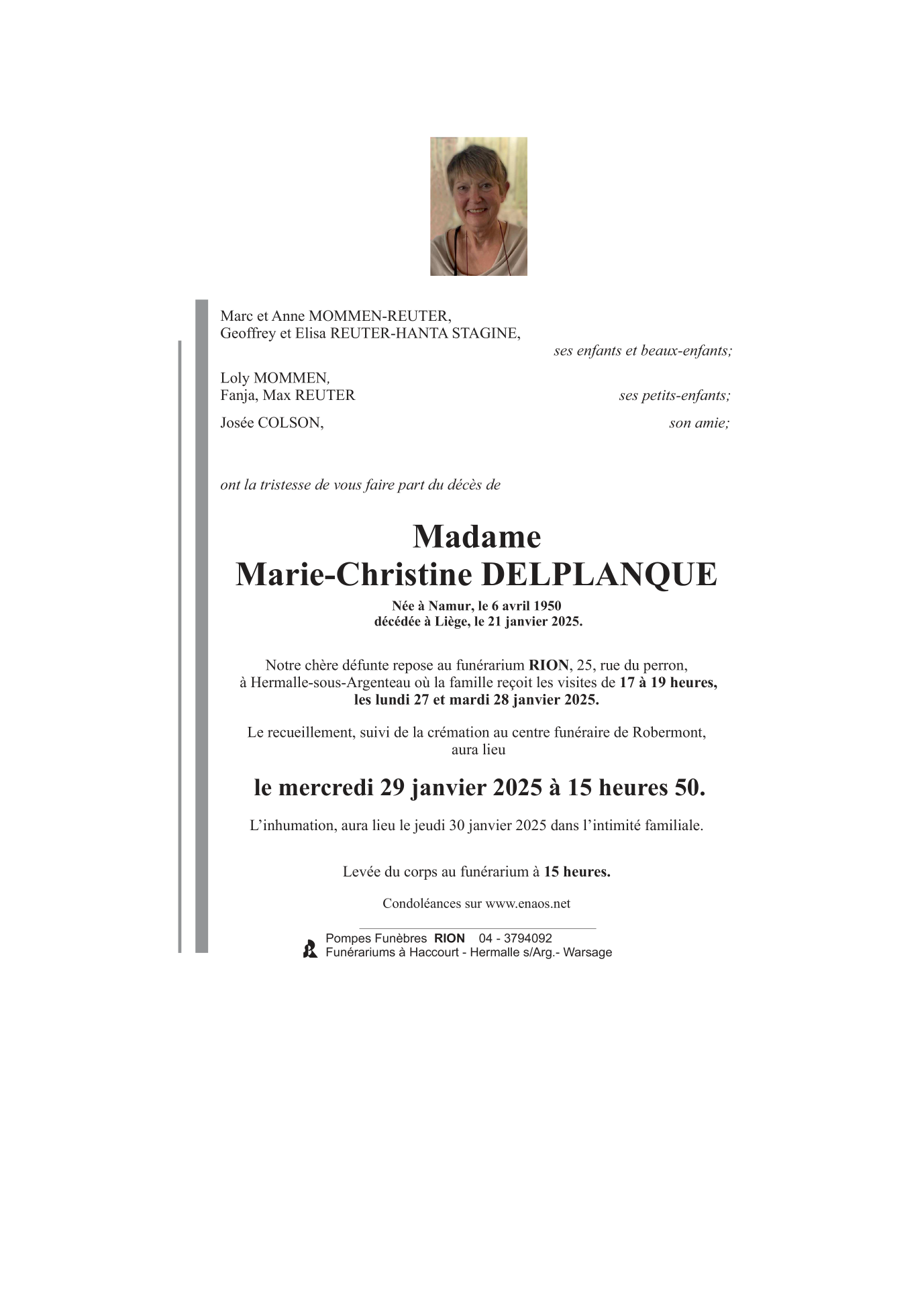 Died in Liège (4000, Belgium) on 21 January 2025 at the age of 74 years