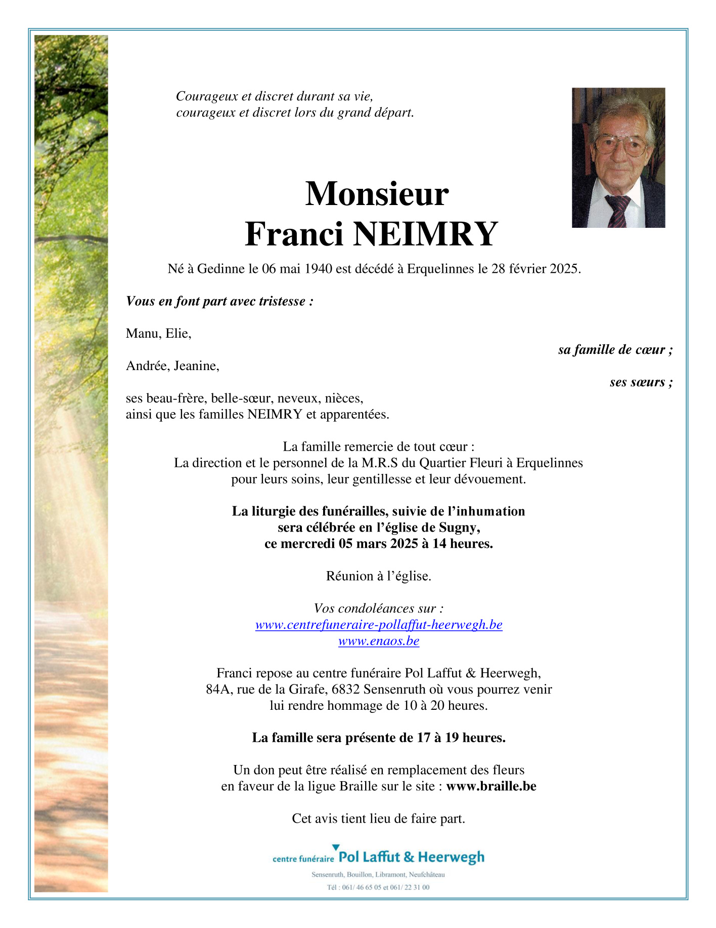 Né à Gedinne (5575, Belgique) le lundi 6 mai 1940