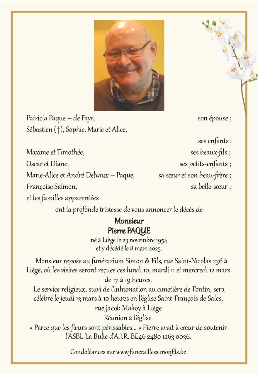Décédé à Liège (4000, Belgique) le samedi 8 mars 2025 à l'âge de 70 ans