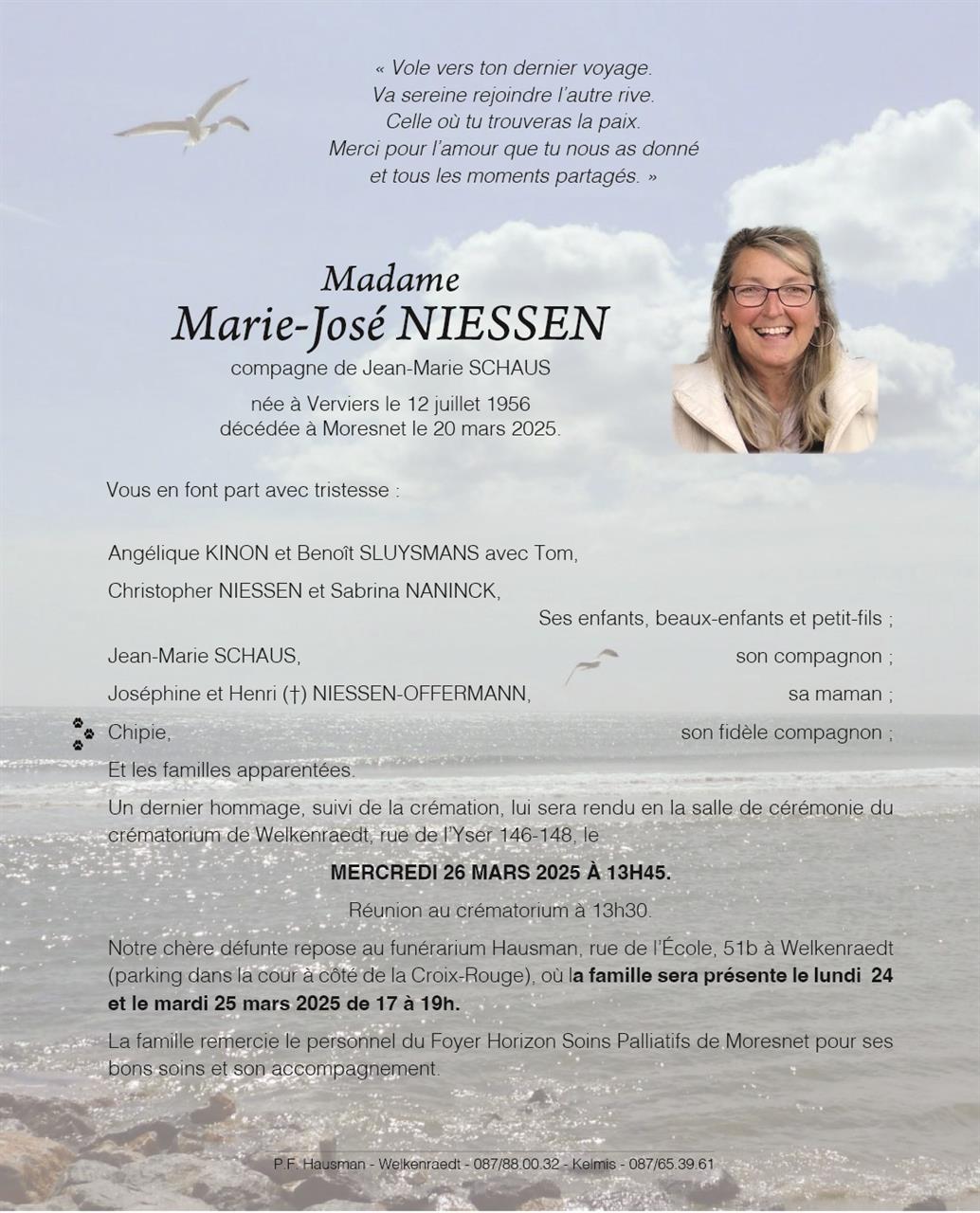 Décédée à Moresnet (4850, Belgique) le jeudi 20 mars 2025 à l'âge de 68 ans