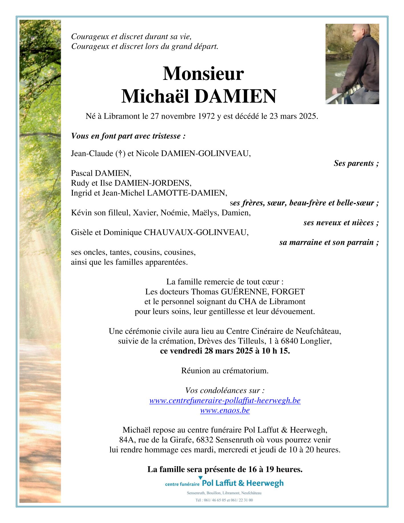 Décédé à Libramont-Chevigny (6800, Belgique) le dimanche 23 mars 2025 à l'âge de 52 ans