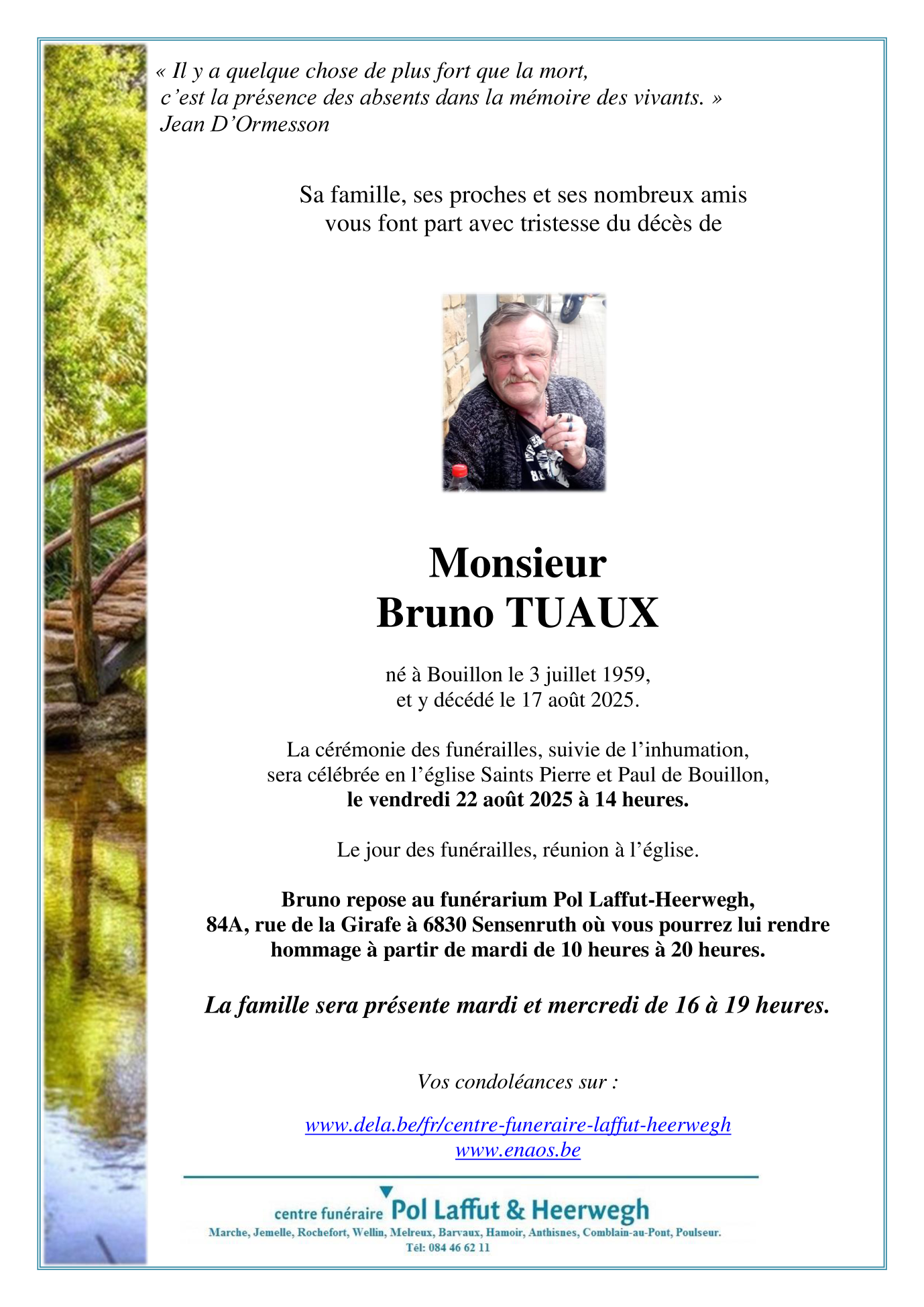 Décédé à Bouillon (6830, Belgique) le dimanche 17 août 2025 à l'âge de 66 ans
