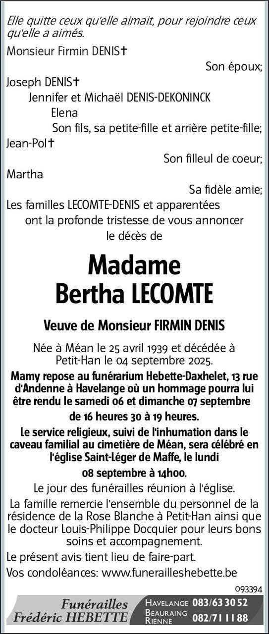 Died in Petit-Han (6940, Belgium) on 04 September 2025 at the age of 86 years