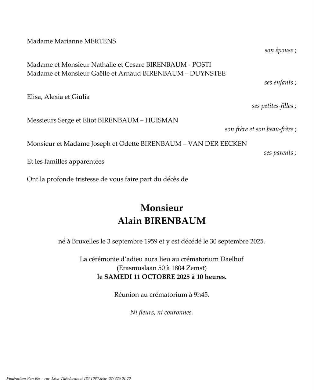 Décédé à Bruxelles (1000, Belgique) le mardi 30 septembre 2025 à l'âge de 66 ans