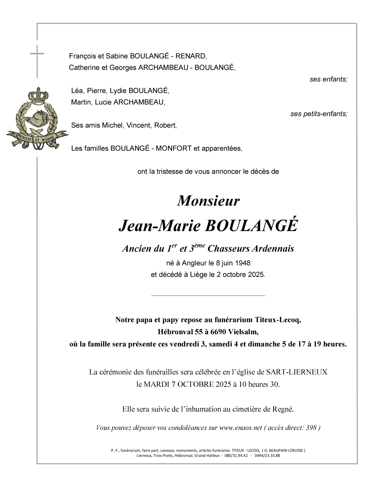 Décédé à Liège (4000, Belgique) le jeudi 2 octobre 2025 à l'âge de 77 ans