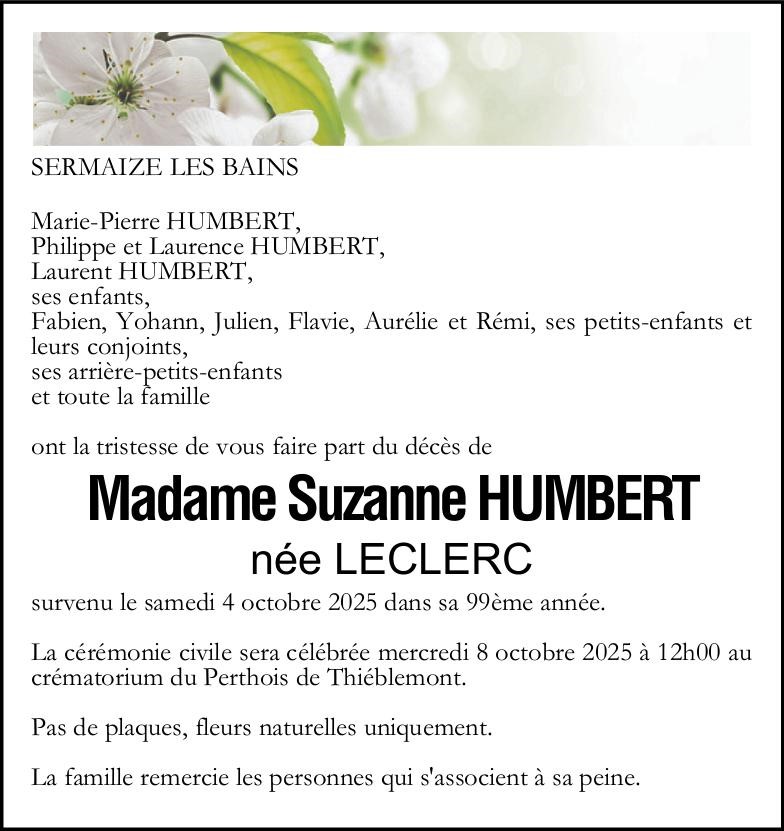 Décédée à Sermaize-les-Bains (51250) le samedi 4 octobre 2025 à l'âge de 98 ans