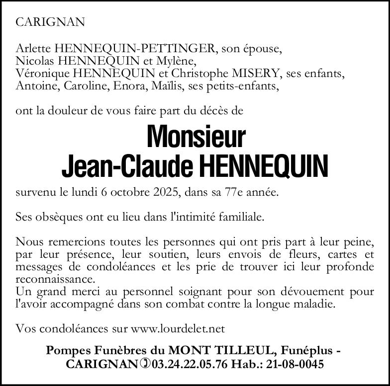 Décédé à Carignan (08110) le lundi 6 octobre 2025 à l'âge de 77 ans