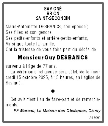 Décédé à Poitiers (86000) le mercredi 8 octobre 2025 à l'âge de 77 ans