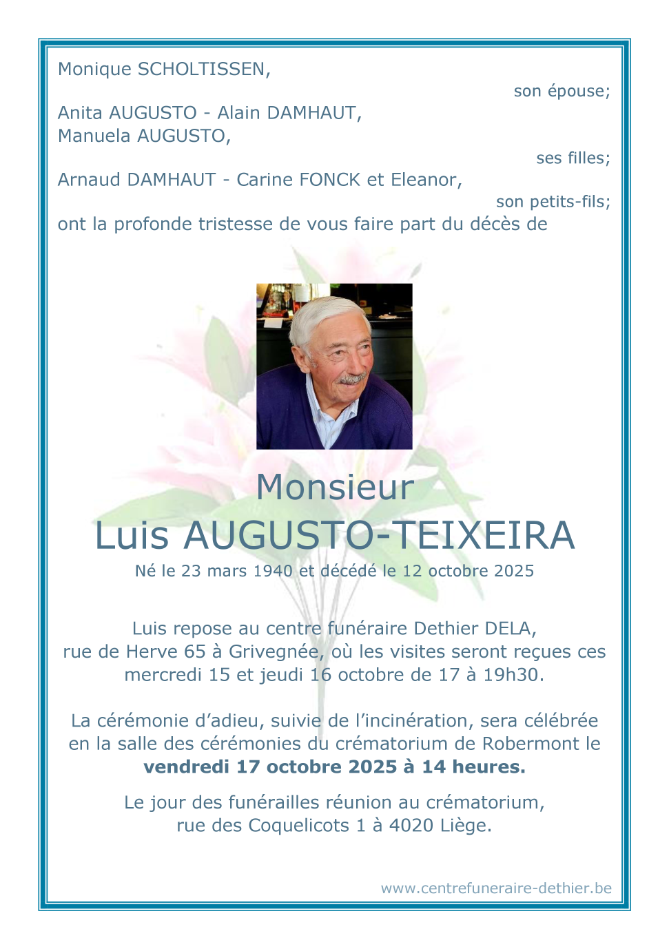 Décédé à Liège (4000, Belgique) le dimanche 12 octobre 2025 à l'âge de 85 ans