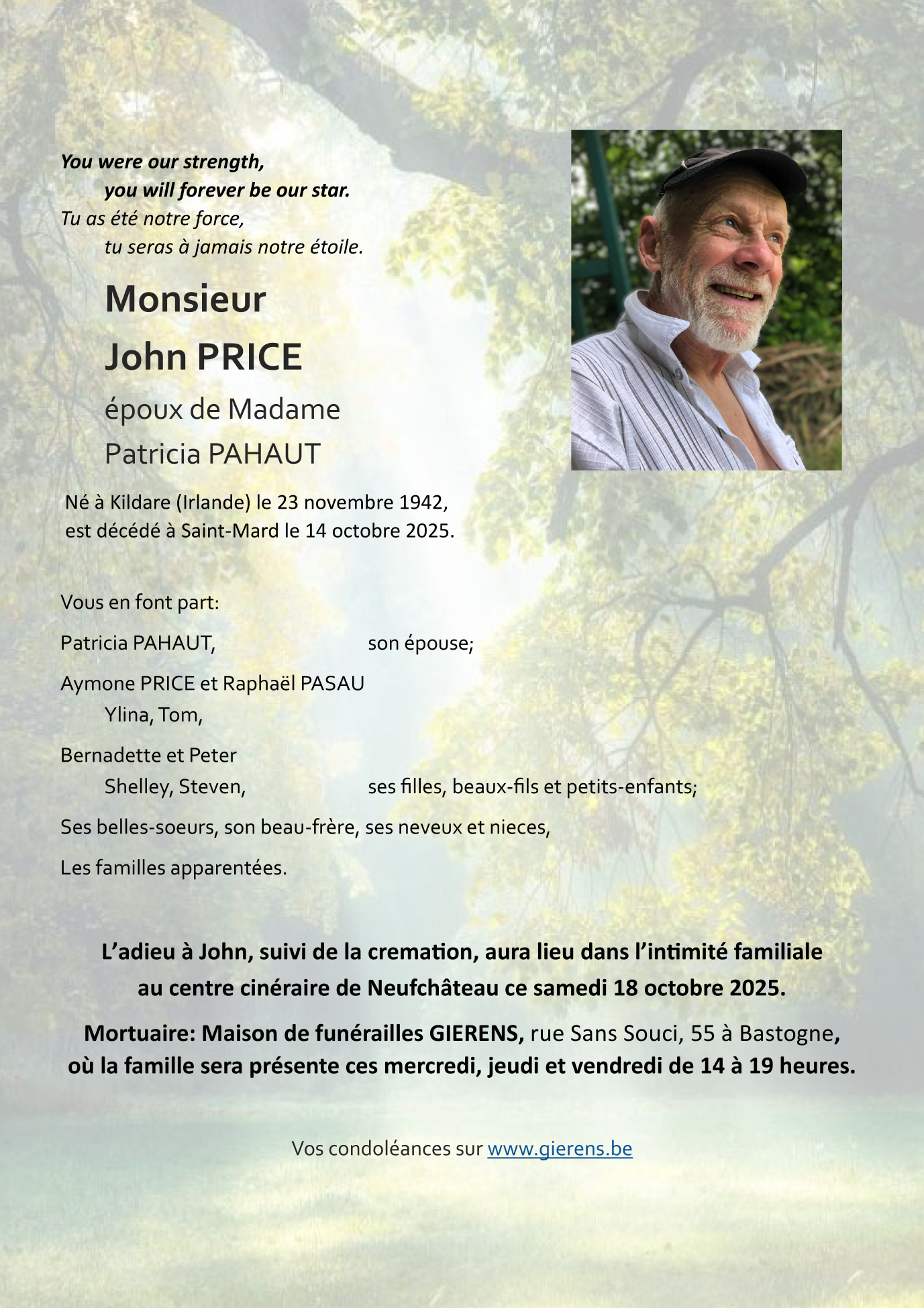 Fallecido en Saint-Mard (6762, Bélgica) el martes, 14 de octubre de 2025 a la edad de 82 años