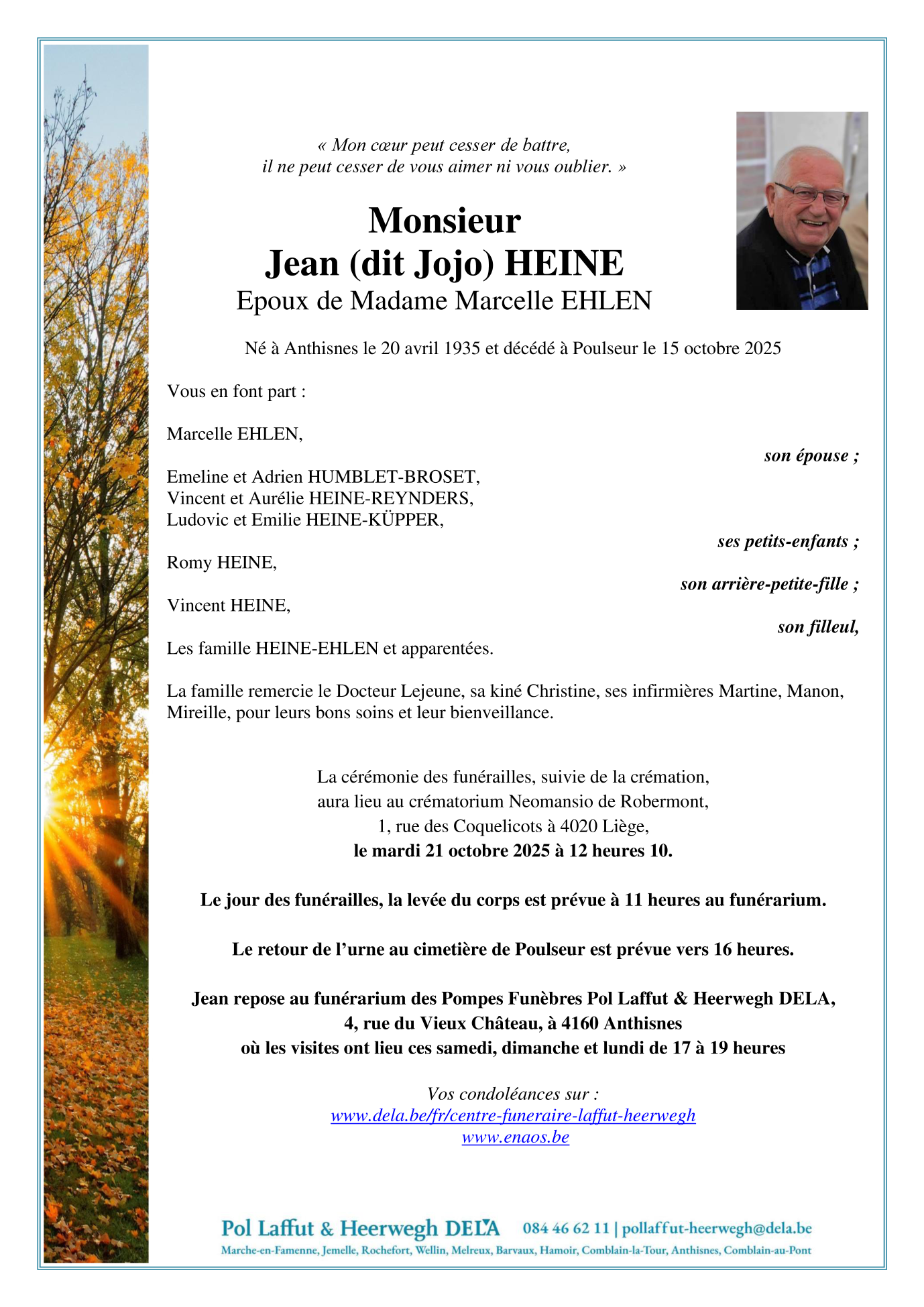 Décédé à Poulseur (4171, Belgique) le mercredi 15 octobre 2025 à l'âge de 90 ans