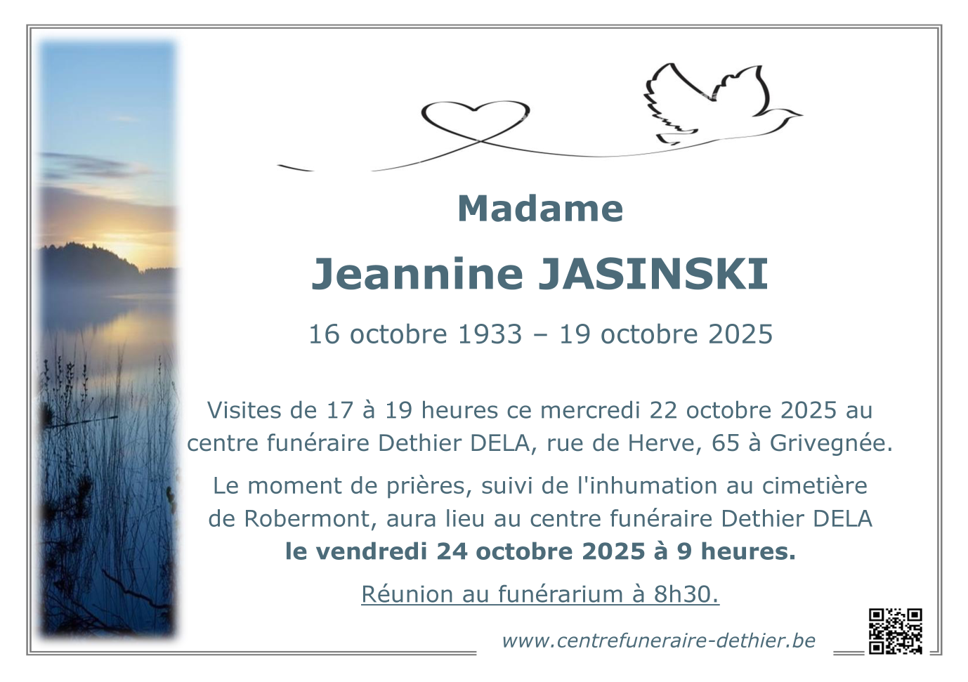 Décédée à Liège (4000, Belgique) le dimanche 19 octobre 2025 à l'âge de 92 ans