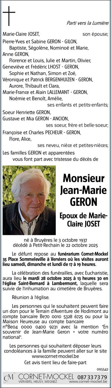 Décédé à Petit-Rechain (4800, Belgique) le mercredi 22 octobre 2025 à l'âge de 88 ans
