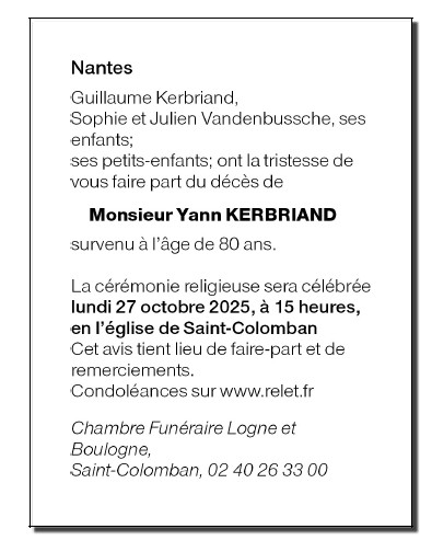 Décédé à Nantes (44000) le mardi 21 octobre 2025 à l'âge de 80 ans